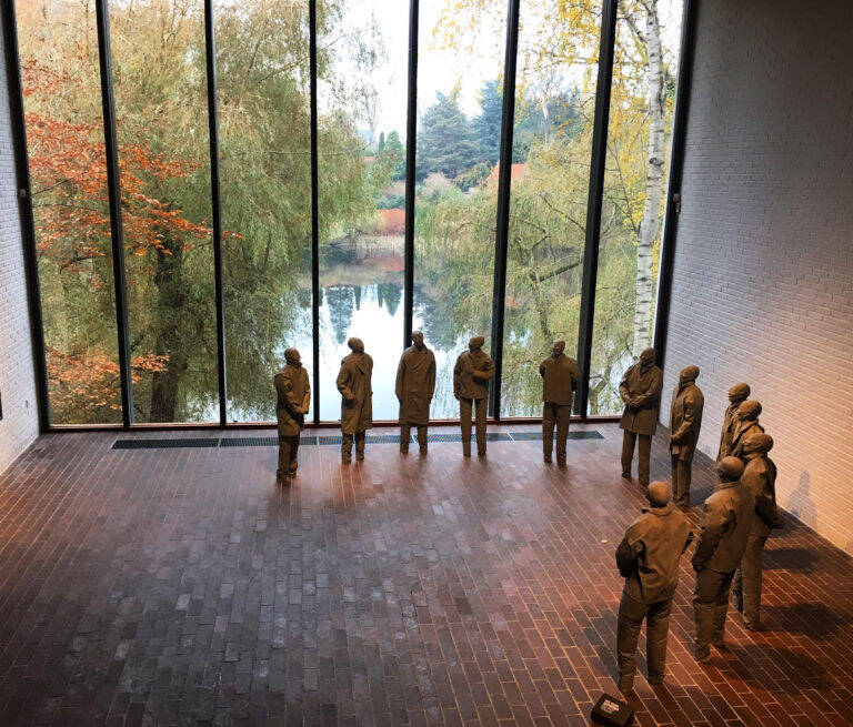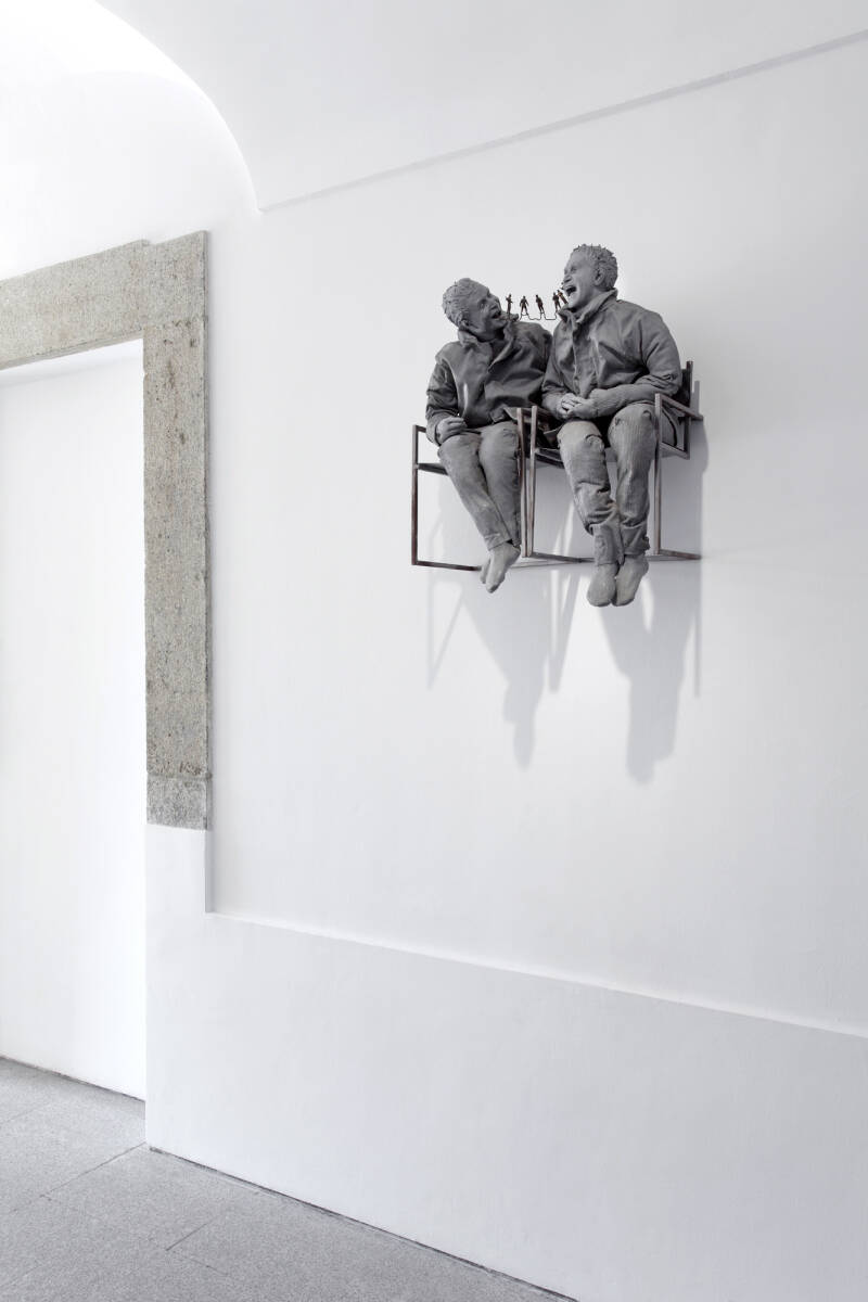 Juan Muñoz (1953-2001) was een Spaans Beeldhouwer. Op Wikipedia staat het volgende over hem: Juan Muñoz werd in Madrid geboren, als tweede van zes broers. In de jaren zeventig studeerde hij in Engeland aan het Croydon College en vervolgens aan de Central School of Art and Design. Daar leerde hij zijn toekomstige echtgenote, de Spaanse beeldhouwster Cristina Iglesias, kennen met wie hij twee kinderen kreeg. In 1982 trok hij naar de Verenigde Staten om met een beurs aan het Pratt Centre te New York te studeren. Hij had in 1984 zijn eerste expositie in de galerie 'Fernando Vijande'. Vervolgens exposeerde hij wereldwijd.