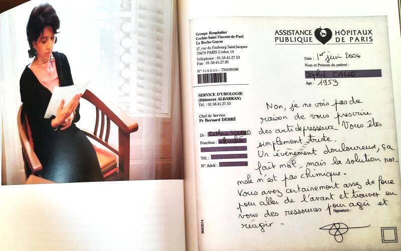 Ik leerde het werk van Sophie Calle kennen tijdens een bezoek aan het Franse paviljoen op de Biënnale in Venetië in 2007. Het project Prenez soin de vous raakte me meteen. Wat een geweldig concept! Eenmaal thuis kocht ik het dikke boek wat er van gemaakt was, ook al zo'n feest. Veel foto's, cd's met optredens, kleine boekjes met verhalen die geschreven werden naar aanleiding van de mail, veel handgeschreven reacties.