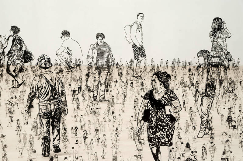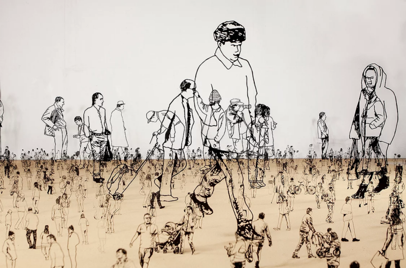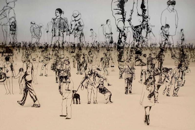 In dit oeuvre werpt Ben-David licht op menselijke momenten die meestal onopgemerkt blijven op de achtergrond van ons stadsbeeld, de figuranten in ons individuele leven: een wandelende dame, starend naar een onduidelijke horizon; een man die zijn dochter liefdevol omhelst; een vrouw die resoluut loopt met een ijskoffie in haar hand; een meisje dat blootsvoets rent en zich stevig vasthoudt aan een stuk speelgoed. Individueel getoond, lijken de tweedimensionale schetsachtige sculpturen alledaagse momenten in het leven van gemiddelde burgers, toeristen en zelfs huisdieren weer te geven, maar gezamenlijk bekeken biedt de installatie een unieke en fascinerende momentopname van de mensheid op een bepaald moment in de tijd.