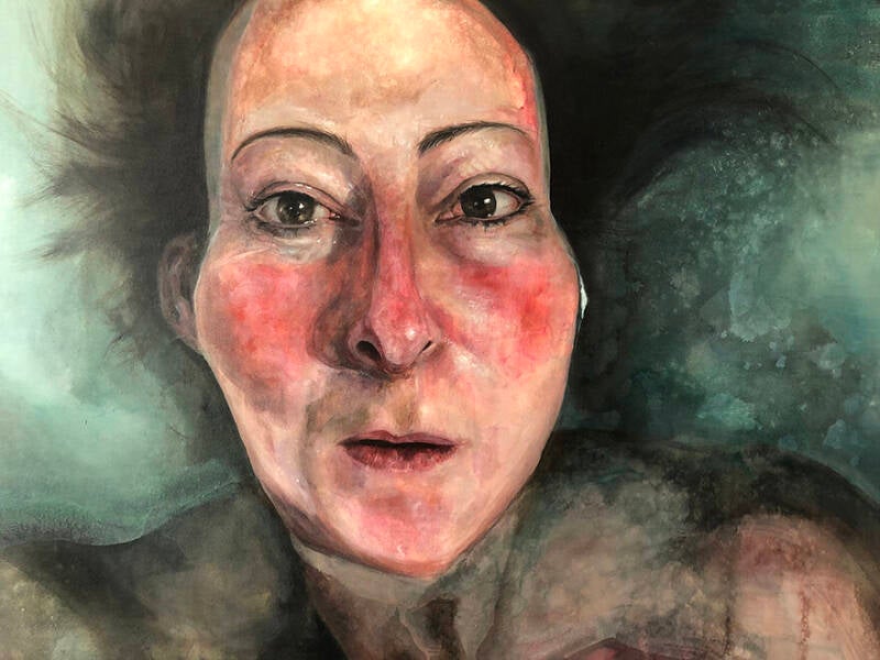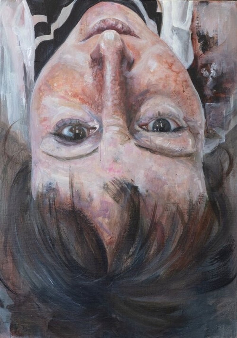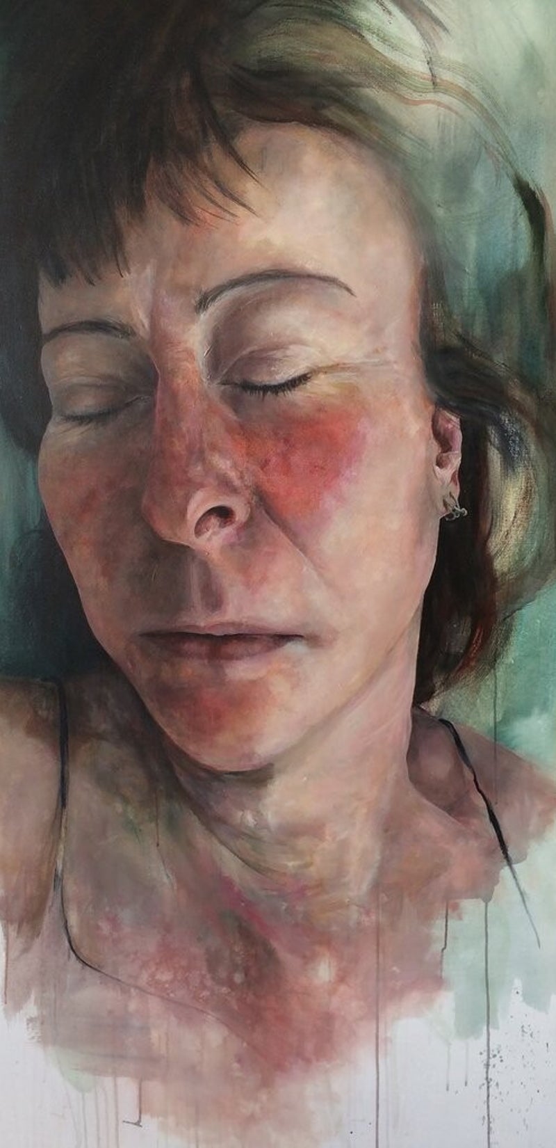 In deze reeks zelfportretten probeert zij voor haar actuele gemoedstoestanden vast te leggen. In een tijdperk van ‘ideale’ selfies is zij juist niet op zoek naar een ‘ideale’ vertaling van de werkelijkheid maar naar het kwetsbare, vergankelijke en het licht verontrustende.