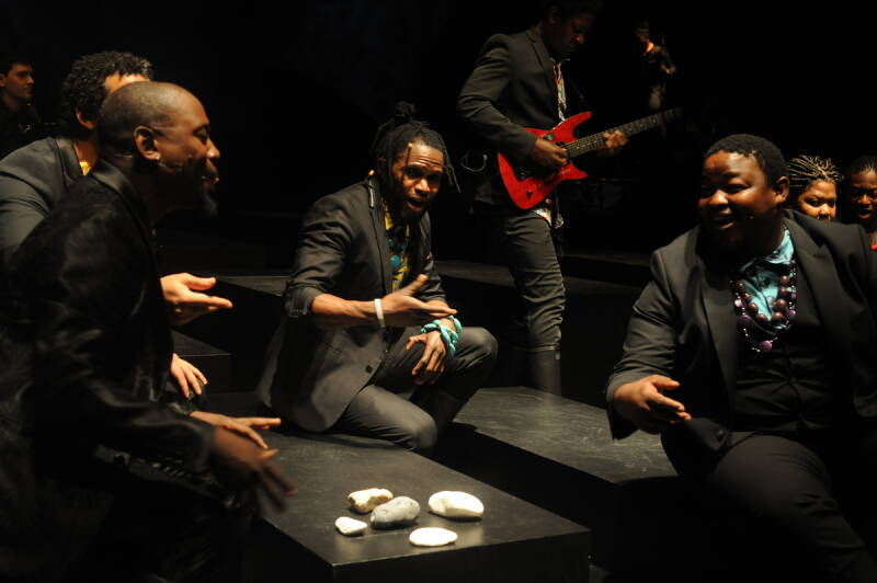 Cassol heeft de koorzang vervangen door zang van individuen. Voor de uitvoering deed hij een beroep op Zuid-Afrikaanse operazangers die hij eerder had leren kennen. Tegenover het trio van lyrische zangers stond een trio van zwarte stemmen die uit de orale traditie komen, zangers met wie hij in eerdere producties had samengewerkt. De Latijnse teksten werden vermengd met teksten in het Lingala, Swahili, Tshiluba en Kikongo. (tekst van Hildegard De Vuyst op: les ballets C de la B.be).