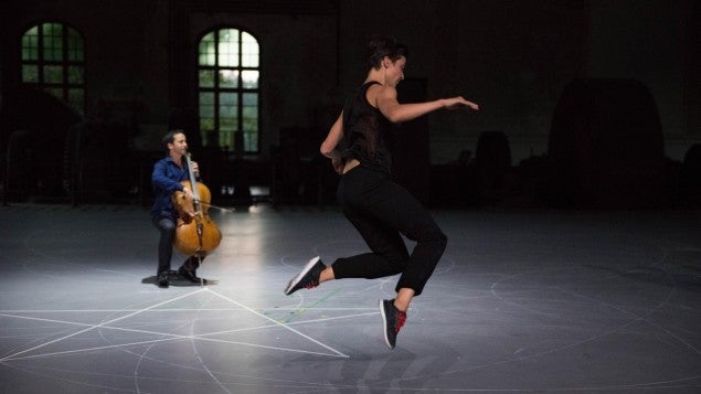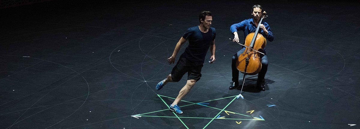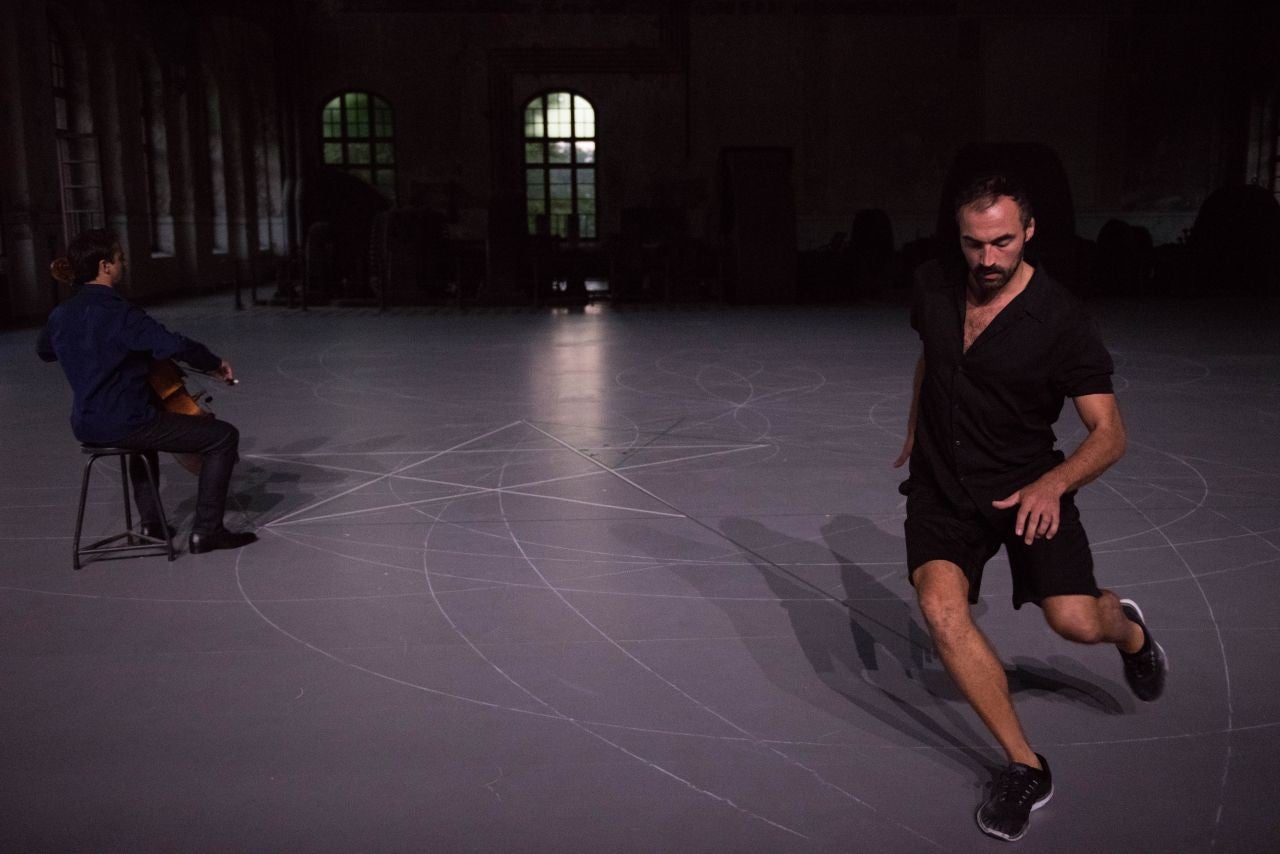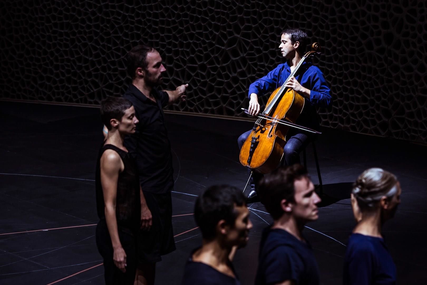 Iedere suite wordt in gebaren aangekondigd door een kleine tengere vrouw, met zwarte krulletjes. Ze vervangt Anna Teresa de Keersmaeker, die vanwege een gebroken schouder zelf helaas niet mee kan dansen. Deze vervangster heeft echt een grappige uitstraling en als ze danst is dat zo lichtvoetig dat het me vertederd. Ze introduceert elke danser met een breed gebaar. De suites worden ieder grotendeels aan één danser toegekend, drie keer een man, één keer een vrouw, één keer staat de cellist centraal. Als Bach het met één cello kan stellen, dan moet zij het ook met één danser kunnen, was het devies van de choreografe. De muziek stuurt de dansers aan. Een noot is een stap, een draai, een sprong.