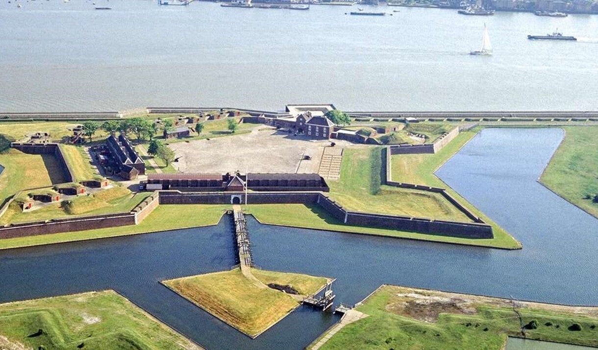 Boven: Tilbury Fort, ook bekend als Ieder Thermitage Bulwark, of West Tilbury Blockhouse.