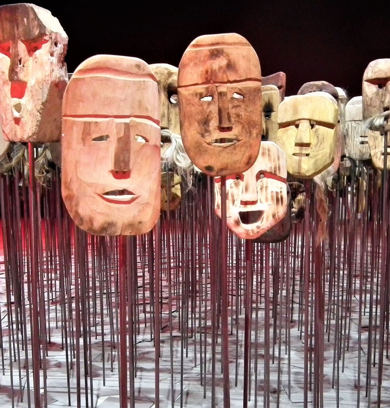 Bernardo Oyarzun - Werken. Vijftienhonderd maskers gemaakt door een inheemse groep uit Chili, de Mapuche. Dit volk strijdt tegen onderdrukking en probeert hun land en daarmee hun identiteit terug te krijgen. De titel van de installatie betekent 'boodschapper', en de boodschap is dat de Mapuche nooit zullen opgeven.