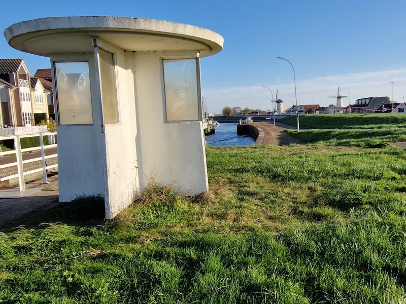 wachthuisje voor het personeel van de bediening van de sluizen; met deze vorm konden ze altijd uit de wind staan