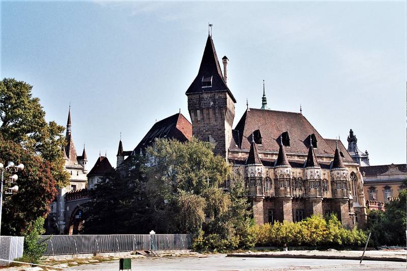 Foto boven: Szechinyi badhuis. Foto links en onder: Vajdahunyadburcht. Gebouwencomplex met diverse architectonische stijlen, ontworpen voor de Milleniumvieringen. De gebouwen worden gebruikt voor tentoonstellingen.