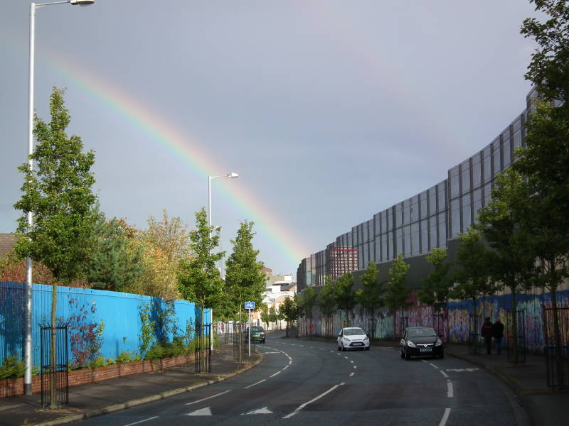 Ik loop rond in Belfast, langs de afscheidingsmuren die vanaf 1969 zijn gebouwd, na gewelddadige rellen tussen protestanten en katholieken. Je kon de muren zonder controle passeren maar vrijwel niemand had daar behoefte aan, men wil op eigen gebied blijven en geen contact hebben met de ander. Tussen de verschillende doorgangen bevonden zich hekwerken die dicht konden om rellen te voorkomen. Ik zie veel politieke graffiti, niet alleen bij de muur maar ook in de wijken. Grote muurschilderingen waarmee gesneuvelde wijkbewoners van toen herdacht worden. Levensgrote herinneringen aan een tijd die nog steeds voelbaar is. Nog steeds overal vlaggen, en prikkeldraad. Terwijl ik er ben hoor ik op het nieuws dat er een speeltuin geopend is waar een paar uur per dag kinderen uit verschillende wijken samen kunnen spelen. Verbijsterd ga ik het gesprek aan met de vrouw van de toeristische informatie. Hoe kan dit? Hoe kan dit nog steeds bestaan? Ze haalt haar schouders op. Zo worden ze opgevoed, en zo blijven verschillen bestaan. Het stadsbestuur heeft in 2013 besloten dat uiterlijk 2023 alle muren verdwenen moeten zijn.