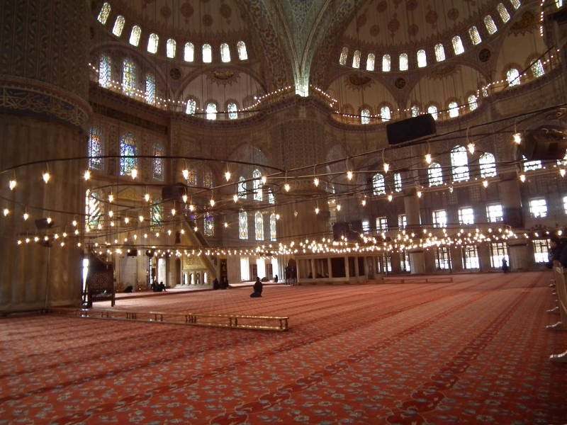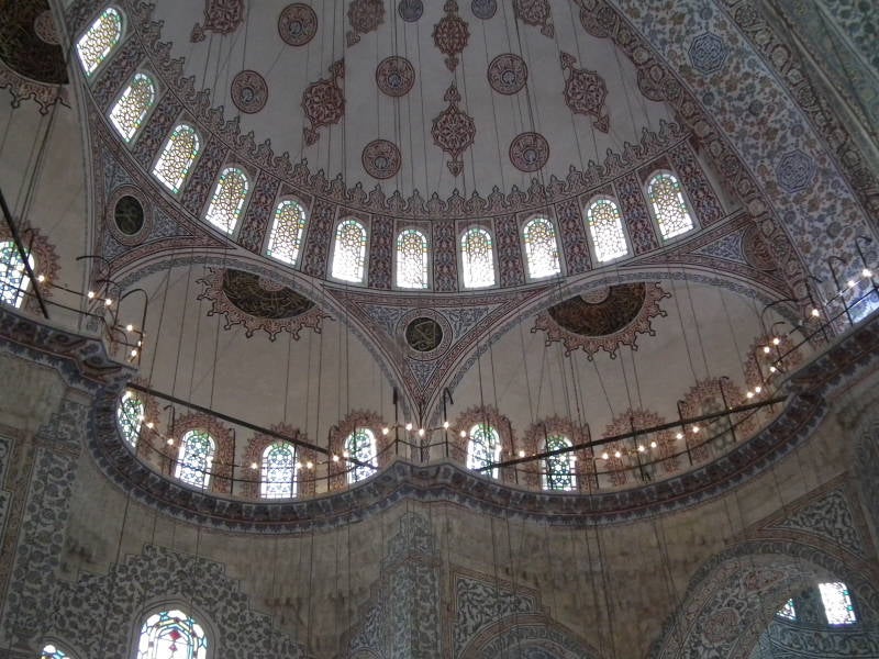 Sultan Ahmetmoskee, ook wel Blauwe Moskee genoemd vanwege de vele blauwe tegels aan de binnenkant van de moskee. Je ziet ze niet meteen, ze zijn aangebracht op de hogere delen en op de binnenplaats. De moskee is gebouwd aan het begin van de 17e eeuw in opdracht van sultan Ahmed I. Hij wilde een moskee die indrukwekkender zou zijn dan de naastgelegen Aya Sofia. De moskee heeft zes minaretten, het aantal minaretten toonden vroeger de rijkdom van de financier. De islamitische wereld reageerde verbolgen op het aantal minaretten, omdat de Grote Moskee in de heilige stad Mekka er ook zes had. De sultan loste dit op door die moskee een zevende minaret te schenken.