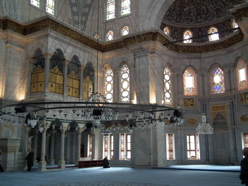 Süleymaniyemoskee. Gebouwd in de 16e eeuw in opdracht van de Ottomaanse sultan Süleyman I. Een moskee was vroeger niet alleen een plaats voor gebed maar ook een charitatieve instelling. Deze moskee is omringd door een voormalig ziekenhuis, een gaarkeuken, een badhuis en scholen. Het complex bood dagelijks voedsel aan meer dan duizend armen van alle geloven. Het gebouw heeft opvallend veel ramen, de architect wilde het lichter maken dan andere moskeeën. Naast de moskee bevindt zich een begraafplaats met de mausoleums van Süleyman en meerdere familieleden en opvolgers.