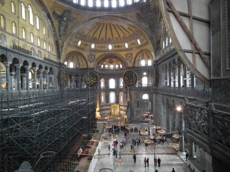 De Hagia Sophia of Aya Sophia, een voormalige kathedraal uit de 6e eeuw. Na de verovering van Constantinopel door het Ottomaanse Rijk in de 15e eeuw werd de Hagia Sophia aan moskee en ging Aya Sophia heten. Het gebouw kreeg minaretten en het kruis op de centrale koepel werd een halve maan. Momenteel is het gebouw een museum. Een bijzonder indrukwekkend gebouw.