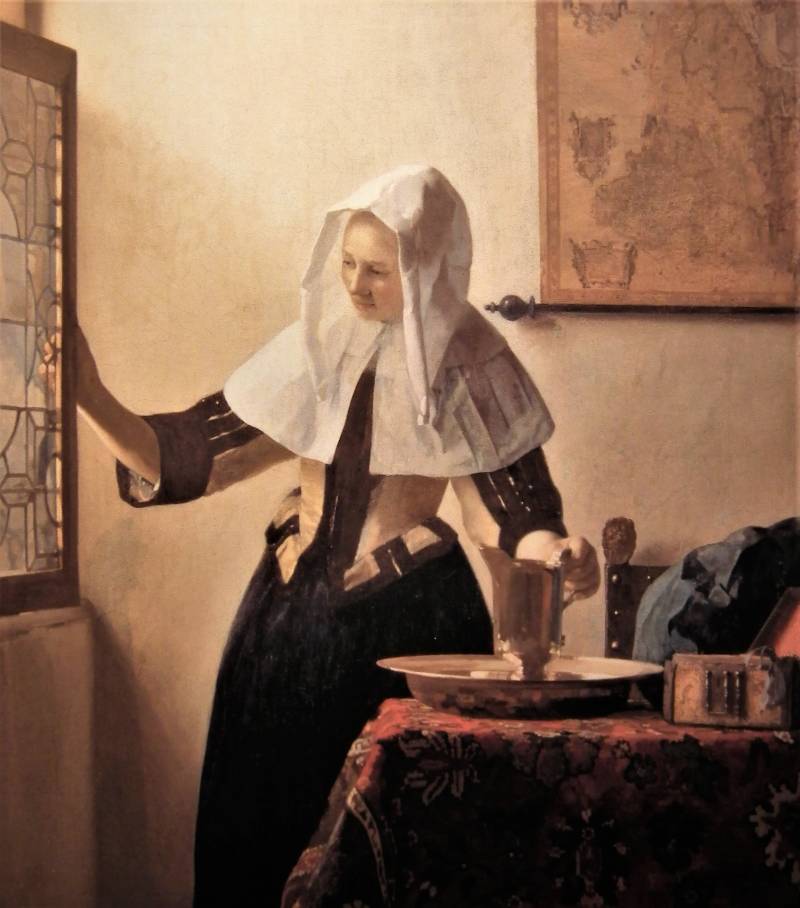 Van Johannes Vermeer ken ik vooral Het melkmeisje en Meisje met de parel. Ik hou wel van die alledaagse taferelen en ik vind het leuk om meer kunst van Hollandse Meesters te leren kennen. In het Vermeer Centrum hangen geen echte werken van Johannes Vermeer, het zijn allen reproducties. Maar het kleine museum geeft je wel een beeld van zijn leven en zijn werken. Ik zie veel overeenkomsten in zijn schilderijen. Meestal een raam aan de linkerkant, daar vlakbij een vrouw, soms twee. Vaak een brief, of een kan met melk of water. Ik wist niet dat die onderdelen zo vaak in zijn werk voorkwamen. En altijd dat licht wat voor hem een middel was om de richting van de kijker te bepalen, om accenten te leggen, te bepalen wat belangrijk was en wat niet. Zijn werk verrast me niet heel erg, het werk lijkt nogal op elkaar, maar wel leuk om eens te zien, in een historisch gebouw.