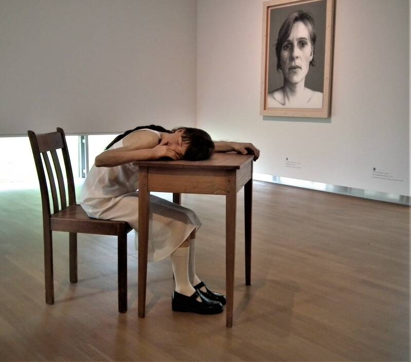 Ook dit werk zag ik eerder. Maar nu veel minder mensen en meer aandacht. Ik kan me niet herinneren dat ik toen ook zag dat haar linkerarm die van een man is. Wat mij betreft zou er ook een museum moeten komen vol met hyperrealistische kunst.