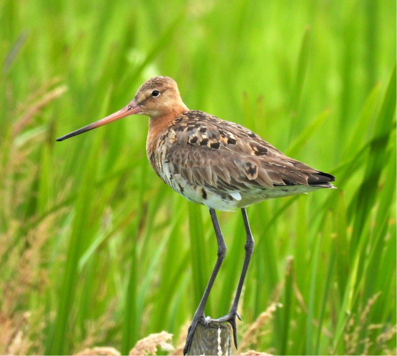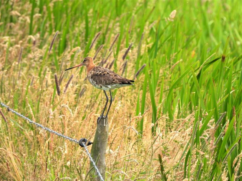 Hier nog een hele serie van de grutto. Ik ben zo blij dat 'ie op een paaltje zit en ook rustig blijft zitten.