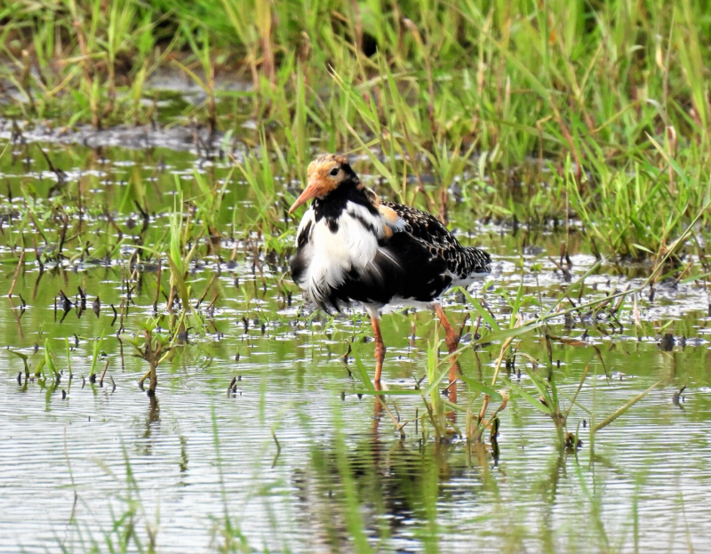 Ik fotografeer 'm maar heb geen idee wat voor vogel het is. Thuis vertelt de app me dat dit een kemphaan is.