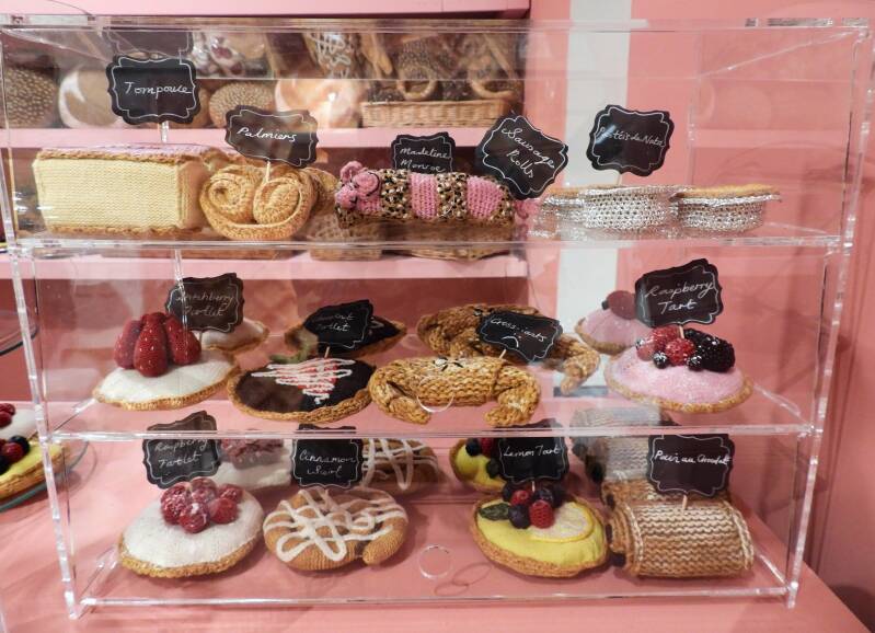 De bakkerswinkel bestaat uit meer dan duizend cakejes, taarten, broden en andere gebreide en gehaakte lekkernijen. Het water loopt me in de mond en de onweerstaanbare geur van versgebakken brood doemt op.