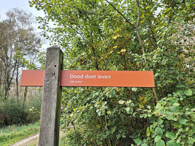 Het pad Dood doet leven lijdt naar een gebied 'dood bos' waar allerlei soorten paddenstoelen een plek hebben veroverd. Ook hier zijn de meeste foto's door mijn zus gemaakt.