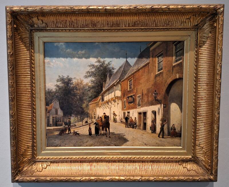 De meeste werken met Amersfoort als onderwerp behoren tot de vaste collectie van museum Flehite. Eigenlijk kom ik hier voor de expositie Wolter & Water. Hendrik Jan Wolter werd geboren in Amsterdam en was 12 jaar oud toen hij met zijn ouders in Amersfoort kwam wonen. Hij volgde een opleiding aan de Academie voor Schone Kunsten in Antwerpen. Hendrik Jan Wolter was sterk gefascineerd door de weergave van uiteenlopende soorten water. Zijn werk is doordrenkt met een onweerstaanbare aantrekkingskracht tot de beweging, tinten en weerkaatsing van water. Wolters schilderijen, variërend van spiegelende grachten, tot kabbelende beekjes, glinsterende rivieren en onstuimige golven, getuigen van zijn verlangen om de ziel van water vast te leggen. Hij besteedde zijn carrière aan het verkennen van de subtiele nuances van licht en kleur die water te bieden heeft.