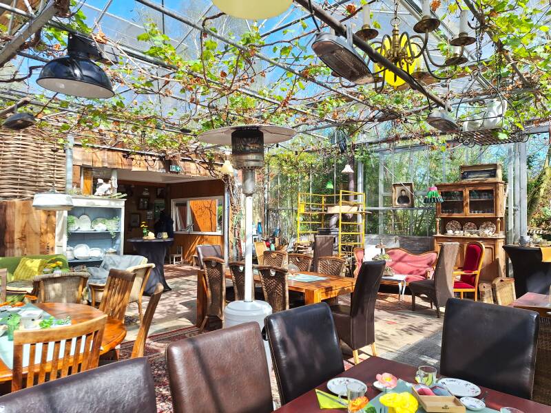 De tuin is vrij toegankelijk. Er zijn diverse zitjes waar je je zelf meegebrachte lunch kan nuttigen.