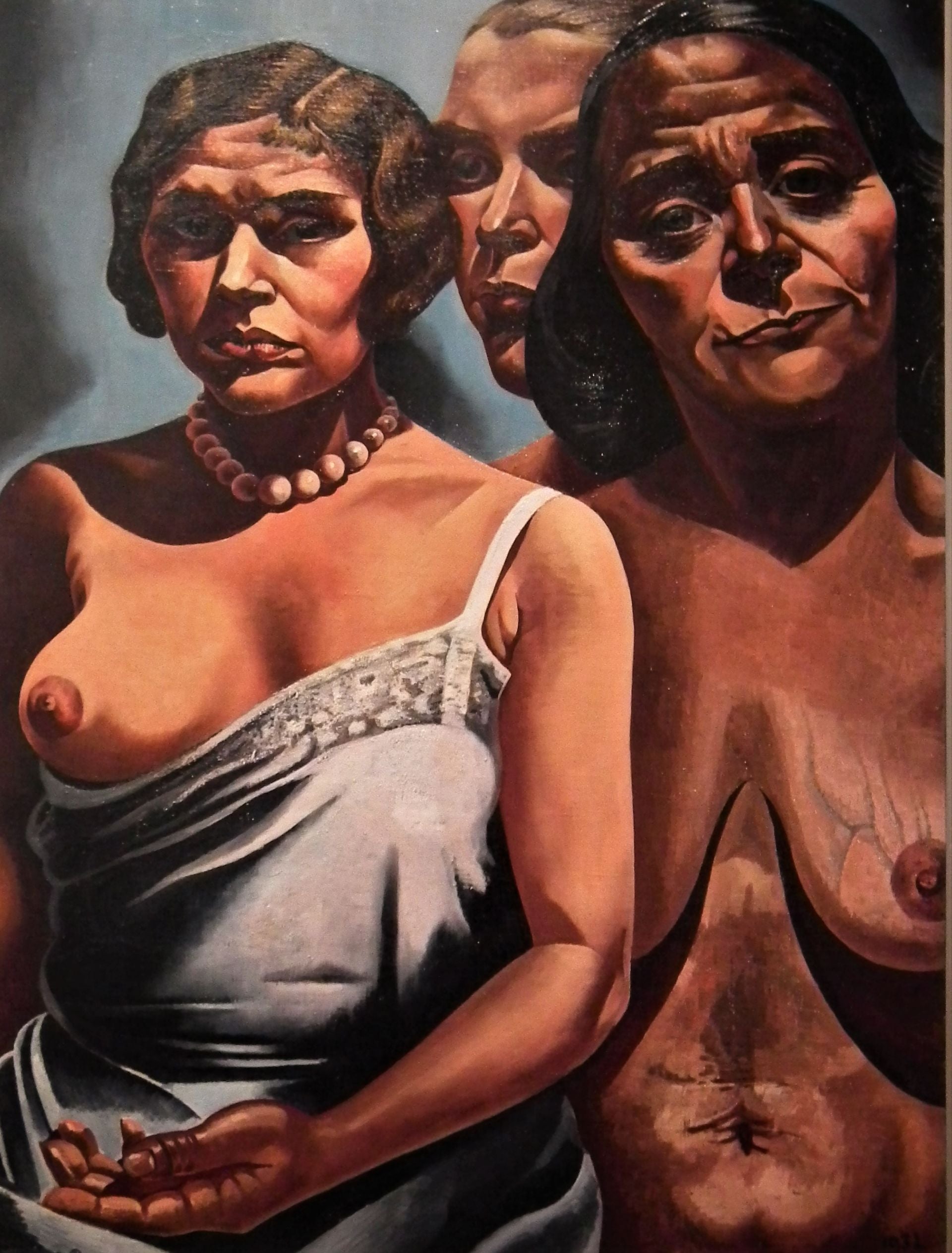 Ik zie het magisch realisme vooral terug in zijn vroege werk, met de vrouwen. Vrouwen met harde trekken, grote ogen, hoerige uitstraling. Geen emotie, geen genegenheid, en naar mijn mening ook geen dimensie. 'Platte' vrouwen. In de Volkskrant van 1995 lees ik het volgende verhaal: