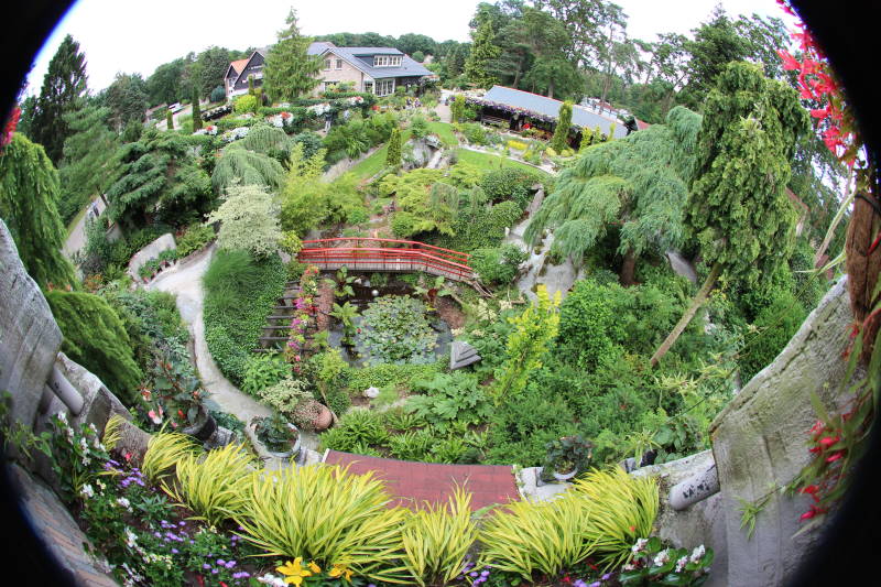 De term folly is overgenomen uit het Engels waar het dwaasheid betekent. Een folly is een bouwwerk dat met opzet nutteloos of bizar is. Je hebt ze in alle soorten en maten, van duiventil tot tempel. Het bezoeken brengt je soms op bijzondere plekken, zoals nu in een achtertuin in 't Harde. Geïnspireerd door het Oostenrijkse landschap legde Ampie Bouw een tuin aan van meer dan 15 meter hoog, ook wel Ampies Berg genoemd. Planten worden afgewisseld met vijvers, rotsen en watervallen. Een heel traditioneel huis en dan zo'n fantasievolle tuin. De plantjes wat te tuttig naar mijn smaak, maar ik heb respect voor de 'dwaze' geest van de maker.