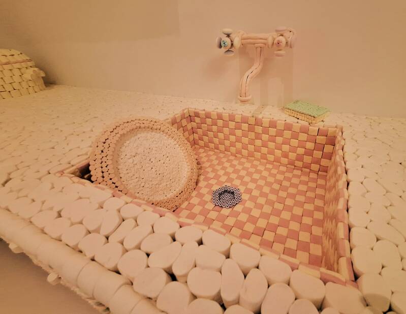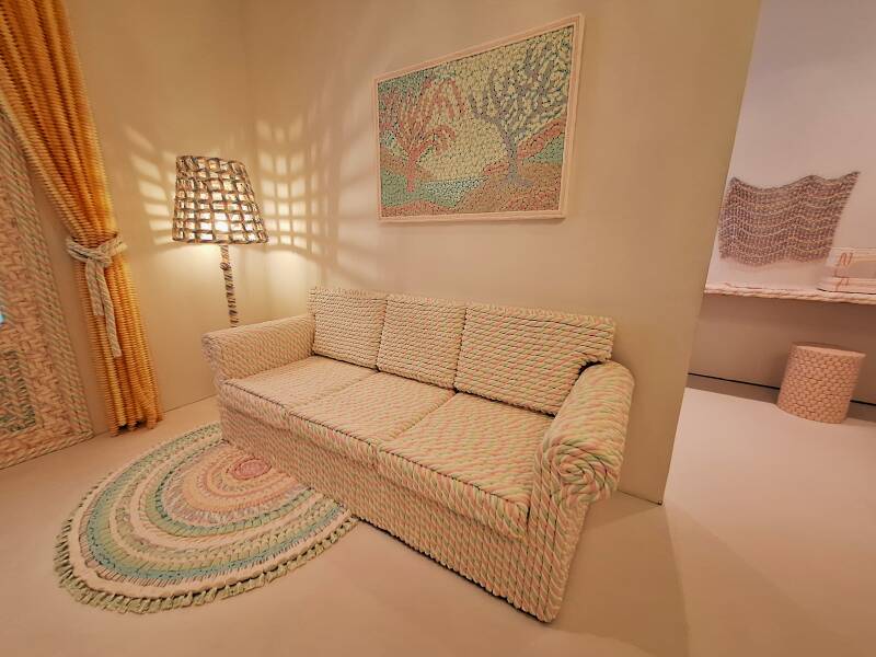 In Voorlinden bouwde Post met schuimpjes, spekjes en snoepkettingen haar ouderlijk huis na, compleet met knuffels, stapelbed en haar moeders naaiatelier. Alles wat je ziet én ruikt in Sweet Memories, van vloerkleed tot wasmachine, is gemaakt van snoep. De ruimtevullende installatie brengt je terug naar een kinderlijke droomwereld waarin alles nog maakbaar lijkt.
