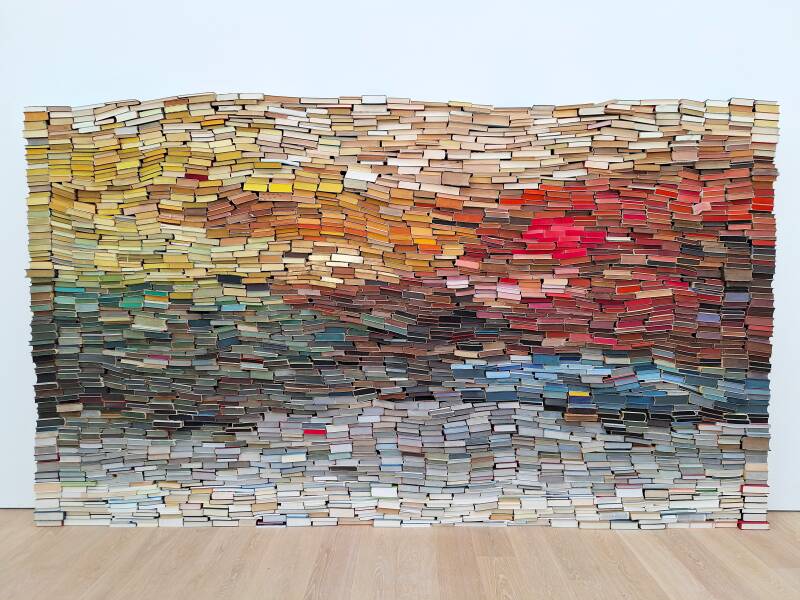Zo'n 3.500 boeken, gesorteerd op kleur, staan opgestapeld tegen de muur. De boeken zijn inmiddels gedateerd; ze stammen voornamelijk uit de tijd van de DDR. Anouk Kruithof vond ze in Berlijn in tweedehandsboekwinkels en bij het oud papier. Ze stapelde ze op tot dit landschap, opgebouwd uit objecten die elk hun eigen verhaal bevatten. Het pixelige beeld dat opdoemt doet denken aan de oprukkende digitalisering. Met deze installatie reflecteert Kruithof hoe het fysieke object, in dit geval een boek, steeds meer wordt verdrongen in deze digitale tijd.