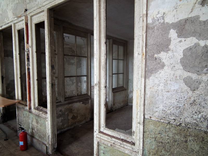 Ik had altijd al interesse om er eens te gaan kijken, en dat werd aangewakkerd door het leuke programma Herbestemming waarin kunstenaar Piet Hein Eek herbestemde of nog nog leegstaande monumentale gebouwen bezoekt, waaronder ook het Hembrugterrein. Ik hoop in dezelfde fascinerende gebouwen rond te lopen als hij in de uitzending. Maar de meeste gebouwen zijn dicht, er hangt een enkele foto aan de muur. Dan maar door vervuilde ruiten spieken en foto's maken. Bij dit soort panden krijg ik altijd de behoefte om kunst te maken, theater, dans.