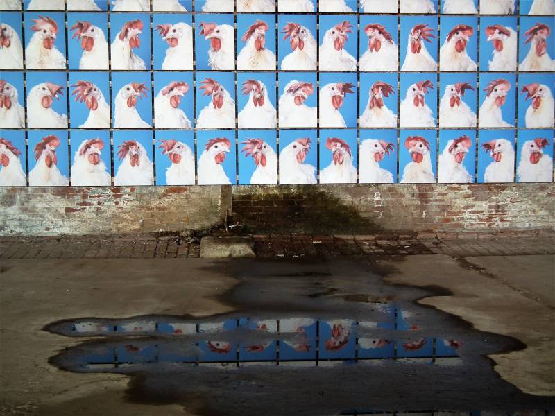 Dániel Szalai portretteerde in het project Novogen 168 verschillende kippen. Het zijn massaproducten, eieren-producerende fabriekjes. Hij wil onze afhankelijkheid van deze dieren voor de industrie tonen.
