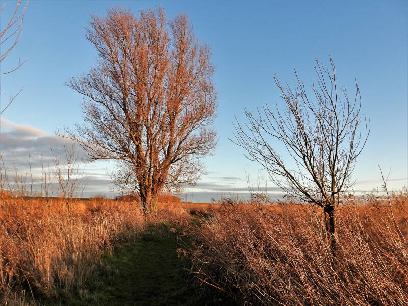 We besluiten terug te gaan naar daar waar het helder is, en minder koud. We rijden terug noordwaarts, naar het kleine Flietsterbos. In dit recreatiebos groeien meidoorn, wilgen, beuken, populieren en elzen. Het bos is daarmee een klein maar gevarieerd bos met een verscheidenheid aan vogels, zoogdieren, vlinders en insecten.