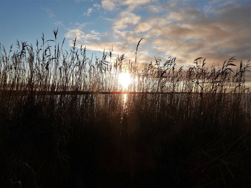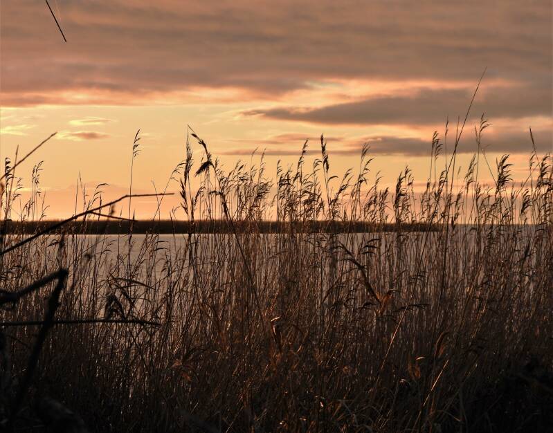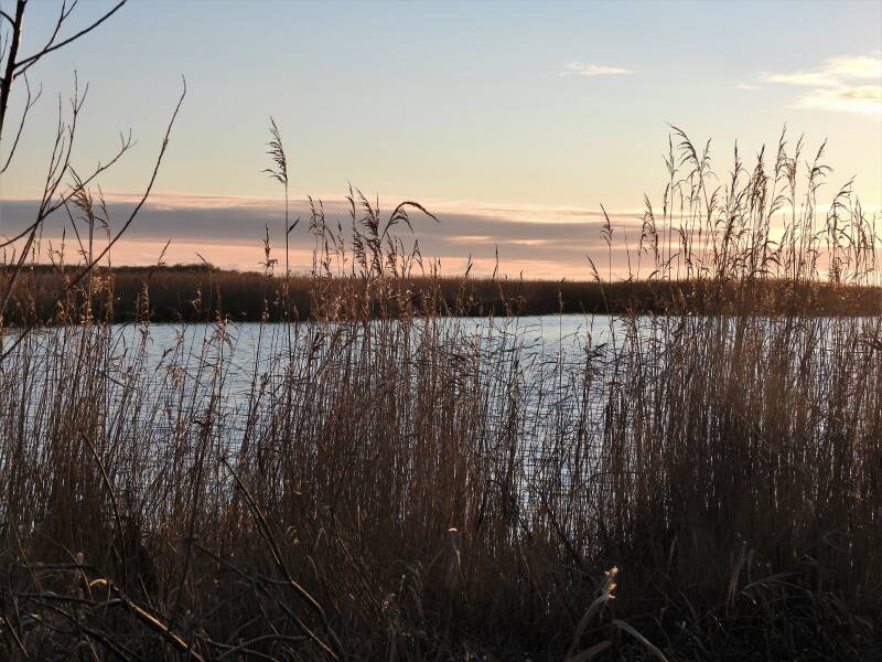 We rijden naar Piaam en lopen het paadje naar de vogelhut. Deze is wegens corona gesloten maar alleen het paadje is al zo aangenaam. De zakkende zon geven het riet een gouden tint en de wolken kleuren vele kleuren waar de vogels sierlijk langs vliegen.