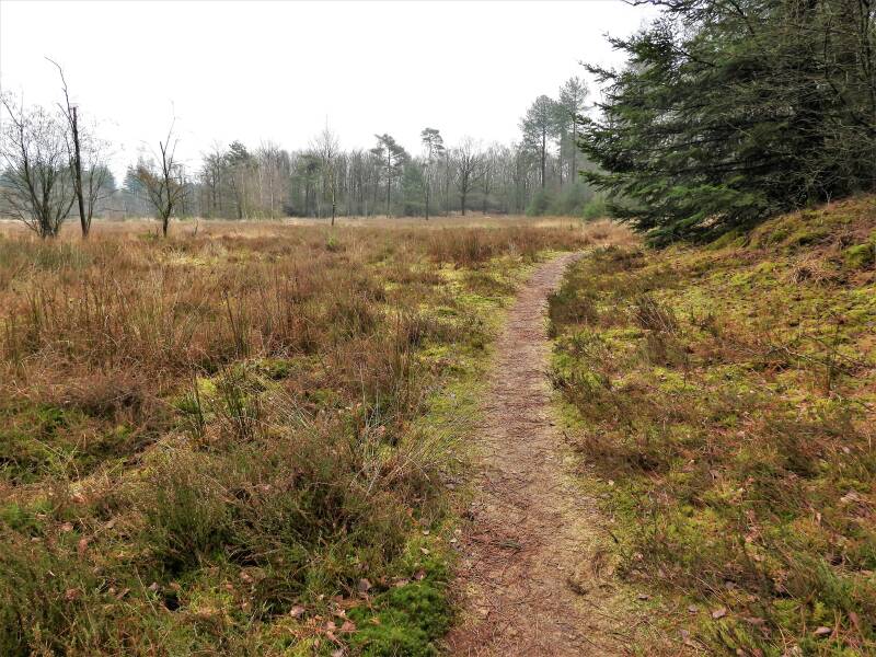 Mijn doel vandaag is een veenplas, vrij zuidelijk op de kaart van dit natuurgebied. Ik loop door afwisselende gebieden. Bossen, open terreinen, heidevelden. Ik kom weinig mensen tegen. Op dit soort dagen moet ik altijd even denken aan Anne Faber.