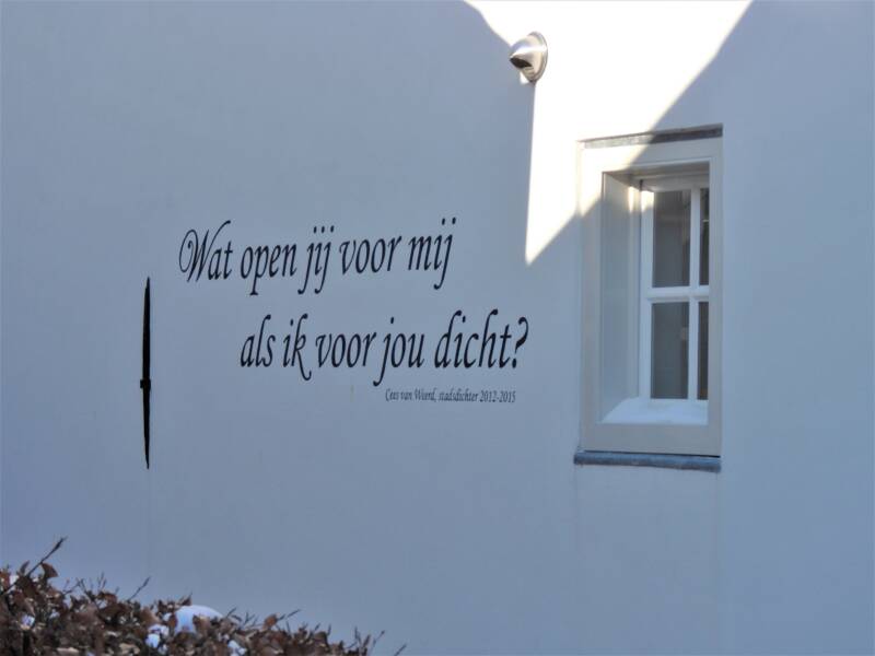 Sinds het begin van dit jaar is er een kunstzinnige wandelroute uitgezet. Van omgetoverde etalages tot gedichten op de muren van de stad. Ik loop vandaag een deel van deze route. Op De Hof staat een kunstwerk van Anders Wolhar in de fontein (foto rechts). Er kwam veel kritiek op, waaronder van Viruswaarheid Midden Nederland. "Hoe kan het zo zijn dat er op de fontein een ziektekiem van het coronavirus wordt geplaatst, als ‘kunstwerk’ dat ook nog eens licht geeft. Is dat voor de gezelligheid? Denkt u werkelijk dat mensen in deze tijd graag een ziektekiem van corona in het middelpunt van hun stad willen zien? Amersfoort plaatst een ‘kunstwerk’ van een ziektekiem van corona op één van de middelpunten van de stad alsof het iets moois is en het vereerd moet worden! Wij vinden dit werkelijk smakeloos, ongepast en grof. Gaan we Amersfoort nog meer angst inboezemen? Dit is indoctrinatie.”