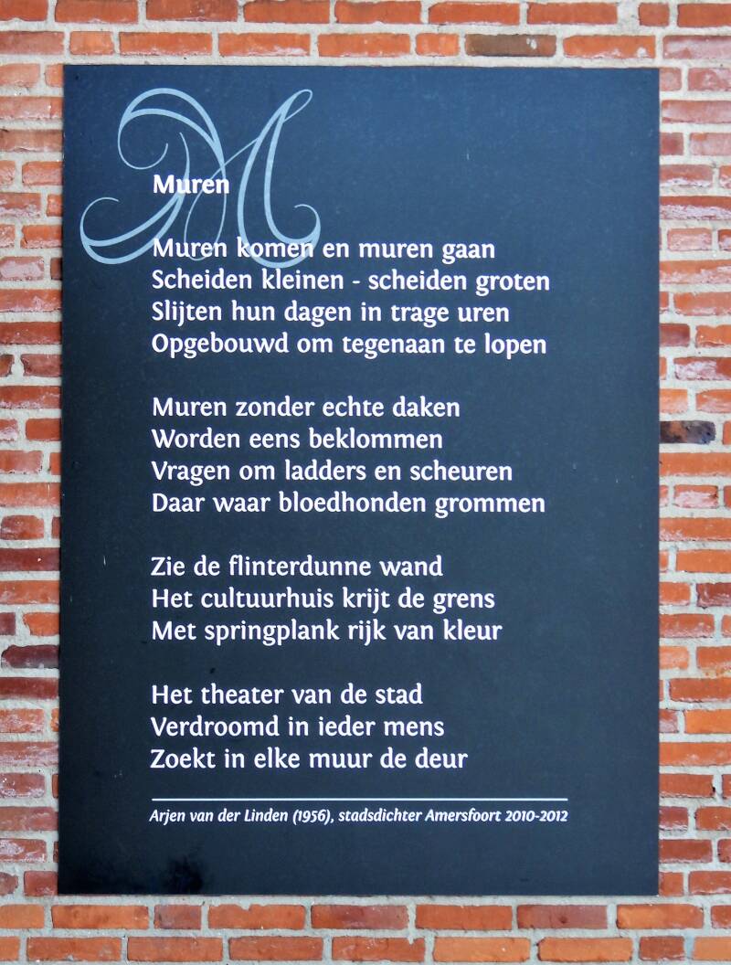 Foto rechtsboven: in 2010 besloten ontwikkelaar Schipper Bosch en restaurant Dara een poëziebord op het dak van het restaurant te plaatsen. Het bord moest een baken zijn, geen reclame. Een buurtbewoner diende een klacht in en na 5 jaar moest het bord verwijderd worden. Mede door grote protesten is het bord 5 jaar later weer terug. Iedere maand verschijnt er een nieuwe tekst. Amersfoorters kunnen meedenken, suggesties doen, zelf teksten maken en insturen en meestemmen. De eerste tekst na de terugkomst in april 2020 luidde:
