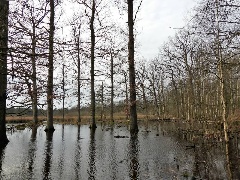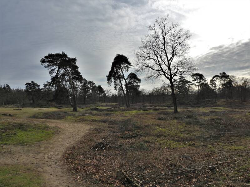 En daarna kom ik aan in het mij bekende landgoed Den Treek. Maar het deel waar ik nu loop ken ik nog helemaal niet. Ik loop door het drassige natuurgebied Langeveen, vroeger een veengebied dat is afgegraven. En verder, naar het voormalige stuifzandgebied De Ringheuvels. Deze stuifduinen zijn begroeid geraakt met bos of werden beplant met bomen. En tenslotte via landgoed Nimmerdor naar huis.