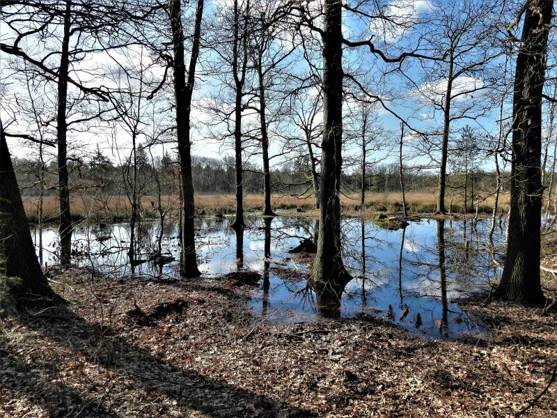 Mijn favoriete plek van dit moment. Er heerst een magische sfeer. De vogels fluiten er hun eigen lied. De ganzen gakken, eenden vliegen snaterend weg. Ik zie een eekhoorn het pad oversteken. Het ritselt in de bladeren aan mijn voeten. Twee muisjes steken hun kop uit een holletje en rennen achter elkaar aan als een stel ondeugende kinderen. De lente is overtuigend losgebarsten.