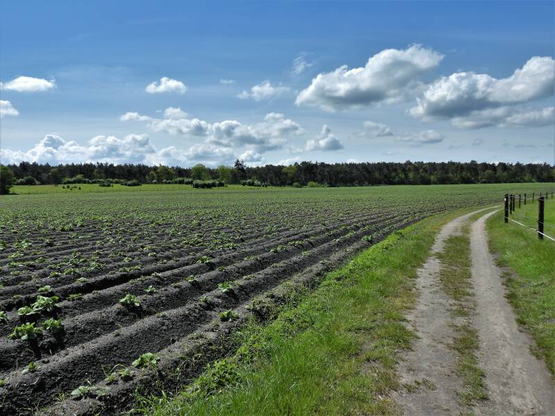 Vandaag reis ik naar Ugchelen, iets onder Apeldoorn. Daar loop ik weer een klompenpad. Wandelen over heide en enken, verhoogde akkers. De akkers van de enk werden steeds opgehoogd met heideplaggen, vermengd met schapenmest. Dat levert mooie glooiingen op in het huidige landschap. Lopen langs sprengen en door bossen. Sprengen zijn door mensen gegraven of verlegde beken met zodanige gegraven bronnen dat er onder druk staand grondwater aan de oppervlakte wordt gebracht.