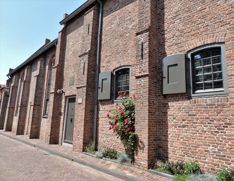 Na het museum ga ik de stad in. Harderwijk kreeg in 1231 stadsrechten. Vanaf dat moment ontwikkelde de stad zich snel tot een vooraanstaande handelsstad. In het centrum veel oude panden, met planten en zitjes voor de deur. In een ander leven, een leven met andere keuzes, had ik ook in een huis gewoond met planten voor de deur, en zat ik op een bankje te praten met mensen uit de straat. De Smeepoortenbrink was een marktplein waar van alles verhandeld werd door handelaren uit de omgeving. Zij kwamen de stad binnen via de Smeepoort. Op de Vischmarkt werd vooral koren, graan en vis verhandeld. Maar ook zout, haring en stokvis uit Scandinavië, pelzen en bont uit Rusland en hout en graan uit Polen.