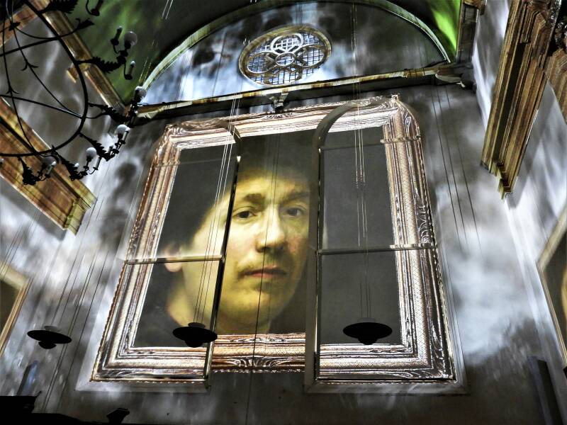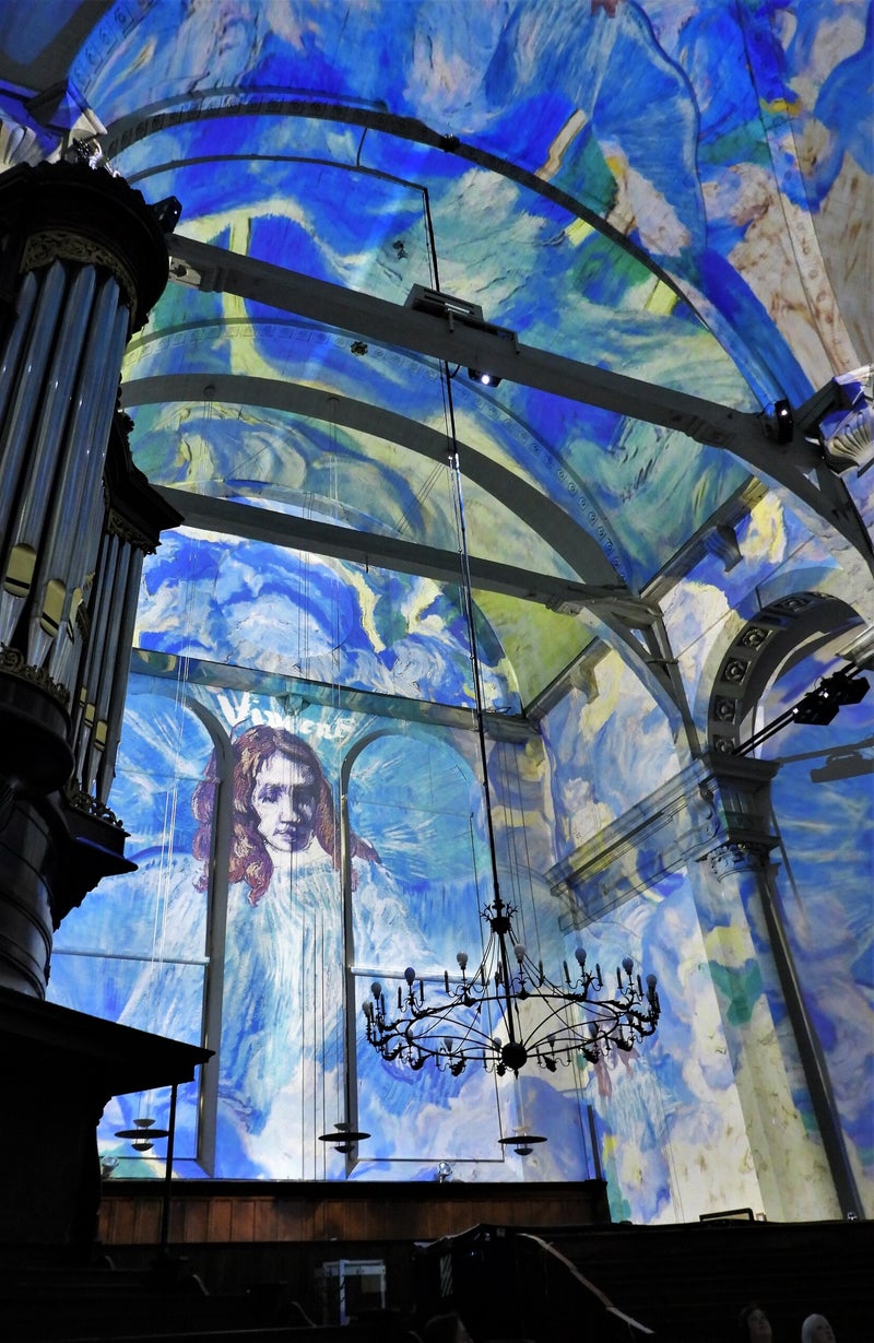 Een paar dagen later ga ik naar de Noorderkerk in Amsterdam. Daar is Vincent meets Rembrandt, een 360-graden projectie op de muren van de kerk.