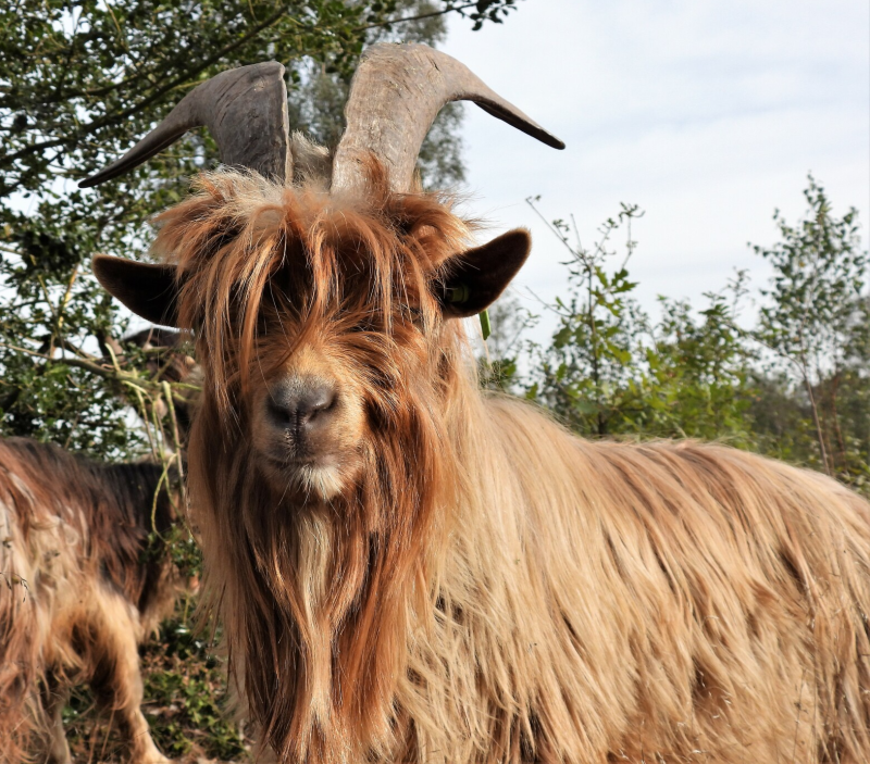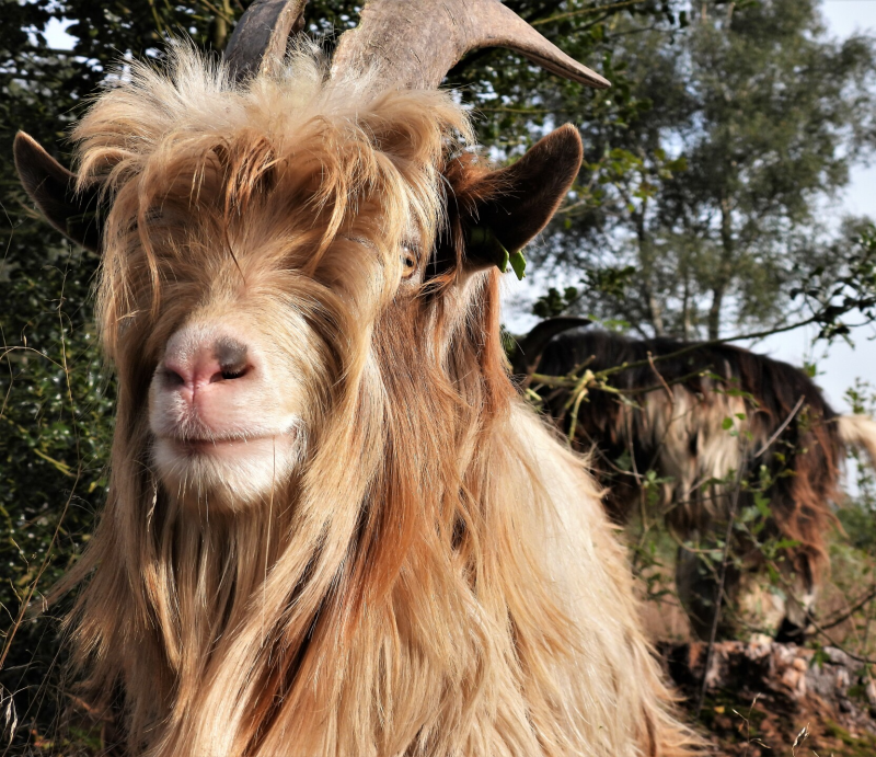 Dan komen we bij de landgeiten. Ik kende ze nog niet, maar wat zijn ze leuk! Met dat haar voor de ogen en die glimlach. Ze stoten met hun hoorns tegen de boom en maken schattige geluidjes. Dinnetje vindt dit artikel over ze: Geiten schieten boswachter te hulp: 'Ze nemen de boompjes te grazen' - Omroep Gelderland (gld.nl). Ik zou de hele middag wel naar ze kunnen kijken.