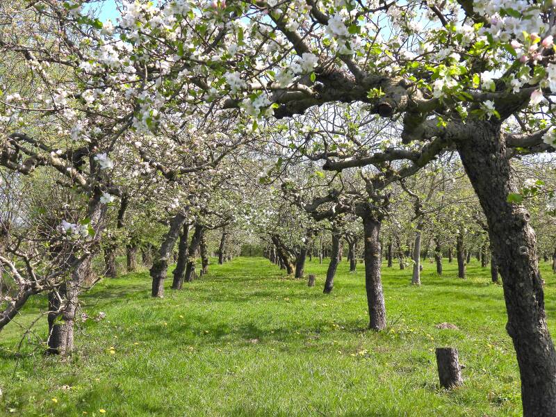 We beginnen bij landwinkel De Woerdt, waar sinds augustus een mooi boerderijterras aan toe is gevoegd. De naam De Woerdt verwijst naar een hoogte. Grote overstromingen dwongen de bewoners in het verleden hun huis te bouwen op natuurlijke en kunstmatige verhogingen, woerden. De boerderij verrees eind 18e, begin 19e eeuw, aan de eeuwenoude postwegtussen Nijmegen en Arnhem. Al in 1832 is sprake van een boomgaard. Het mooie van deze wandeling is dat je al snel tussen de fruitbomen loopt en ze van zo dichtbij kunt zien.