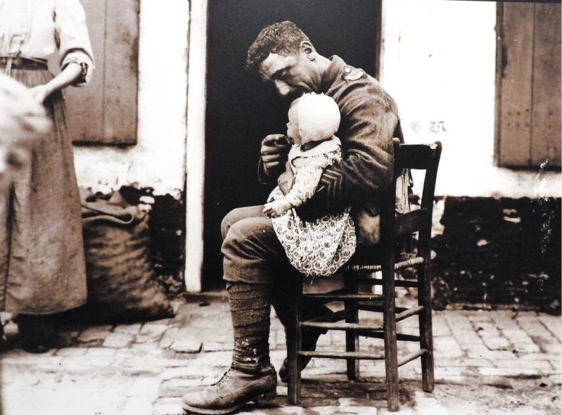 Bijzonder indringend om door de kijker deze 3D-foto's te zien van de oorlog, beelden van het slagveld met de techniek van stereofotografie. Na iedere oorlog wordt geroepen: dit nooit meer! Technieken veranderen, maar de mens en zijn expansiedrift niet. Het journaal laat momenteel dagelijks soortgelijke beelden zien, van kapotgeschoten steden en omgekomen burgers. In WOI, na de val van Antwerpen op 10 oktober 1914, stroomden de Belgen Nederland binnen. In drie maanden tijd werd het land overspoeld door een miljoen ontheemden. In de aanvankelijke chaos zijn het vooral lokale comités en particulieren die spontaan hulp boden. Na enkele weken keerden de meesten terug naar hun vaderland. Uiteindelijk brachten ongeveer 80.000 Belgen de vier oorlogsjaren in Nederland door. Er werden vluchtoorden gecreëerd, opvangkampen voor Belgische burgervluchtelingen.