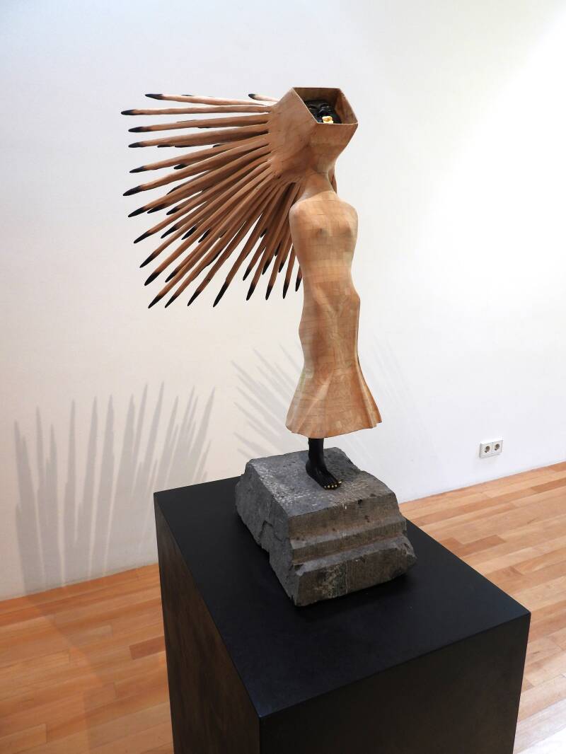 Hans Verhoeven benadrukt bij dit beeld de tegenstelling tussen hoofd en lijf.