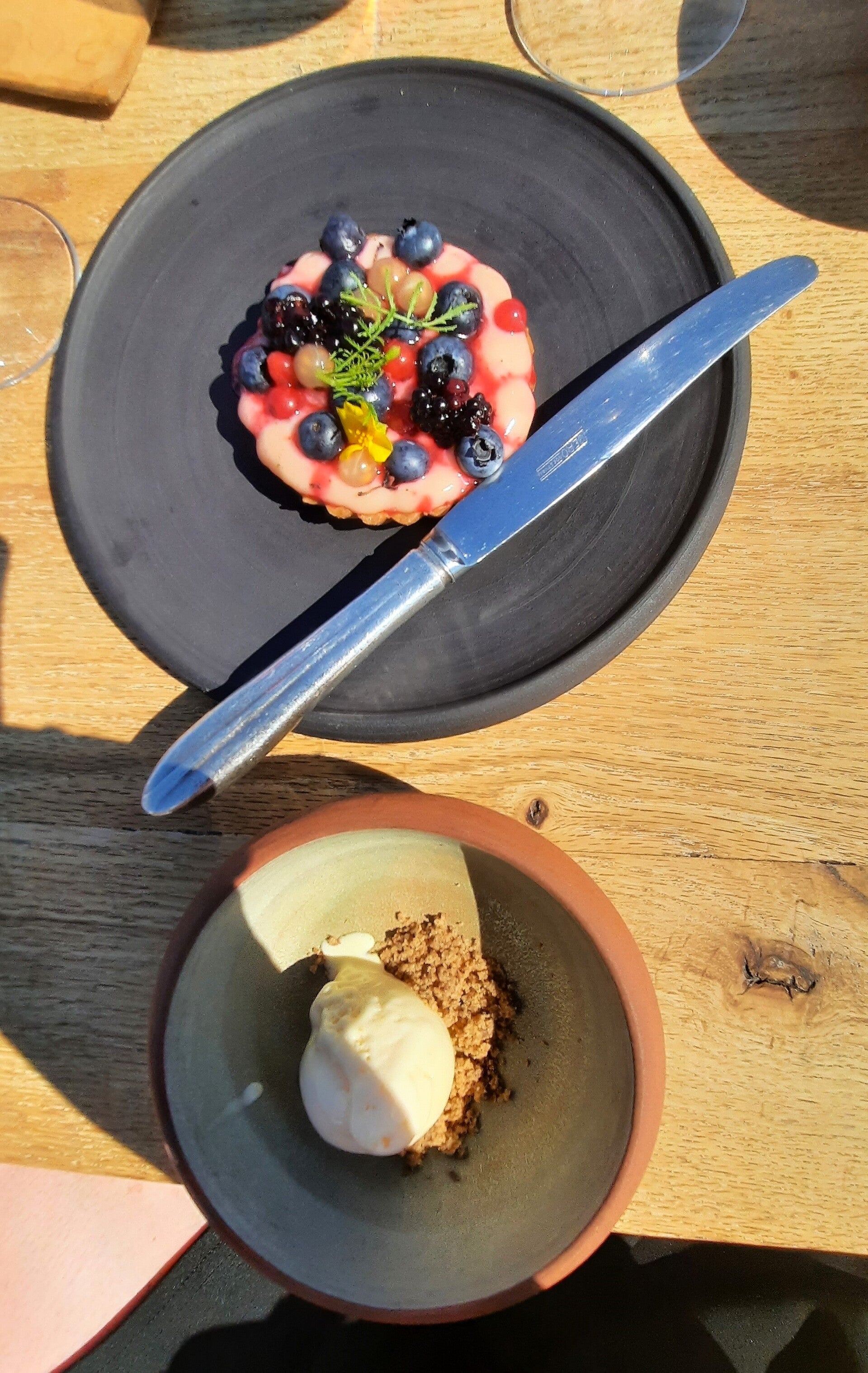 Het personeel, wat deels ook meevoer op de boot, vertelt bij iedere gang enthousiast over de ingrediënten, de herkomst, de bereidingswijze en over de gekozen wijn. Ook al moeten ze dit meermaals vertellen vanmiddag, het wordt geen afgedraaid verhaal. Met elkaar stralen ze een familiegevoel uit. Ze weten veel, zijn goed op elkaar ingespeeld, en hebben het overduidelijk naar hun zin. Heel sympathiek ook dat ze geen reserveringen voor groepen vanaf 9 personen maken, omdat er zoveel vraag is van individuele gasten. Dat zegt voor mij iets over hun niet commerciële instelling.